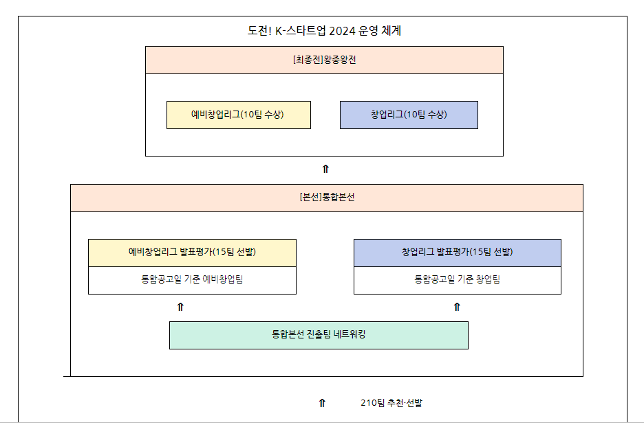 * 통합본선 단계부터는 진출팀 창업 여부(통합 공고일 기준)에 따라 예비창업리그와 창업리그로 구분하여 진행