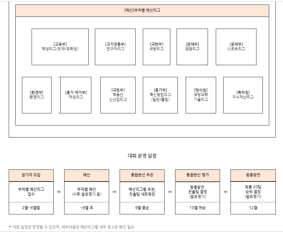 ㅇ 대회 운영 방식: 참여 부처별 예선리그를 거쳐 우수 참가팀을 선발·추천하고,