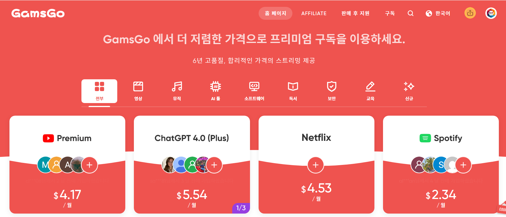 인기 구독 서비스를 합법적으로 공유할 수 있는 플랫폼이에요.