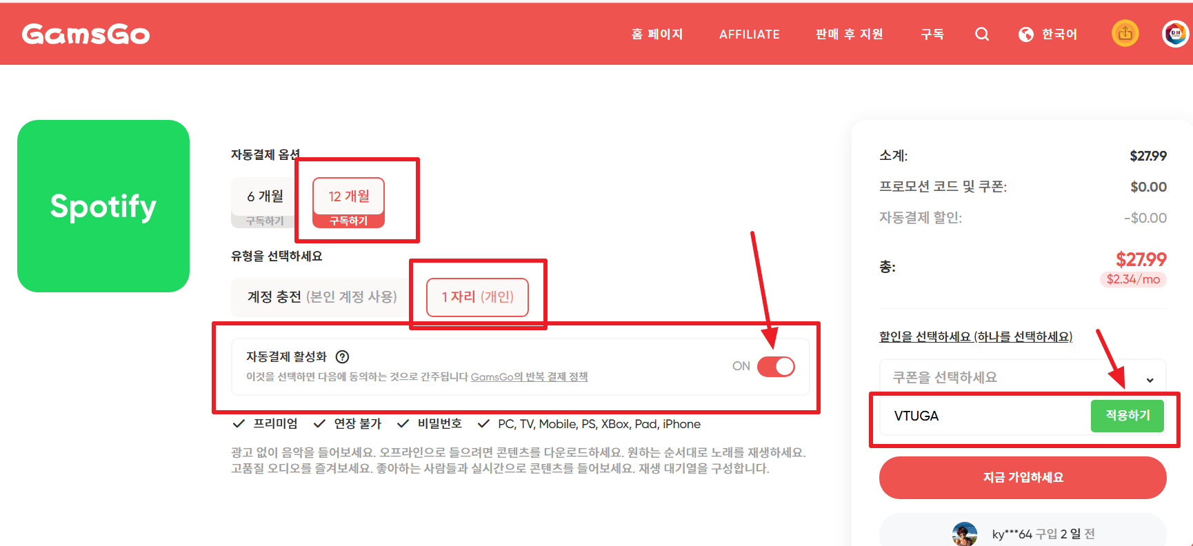 스포티파이 겜스고에서 할인받기
