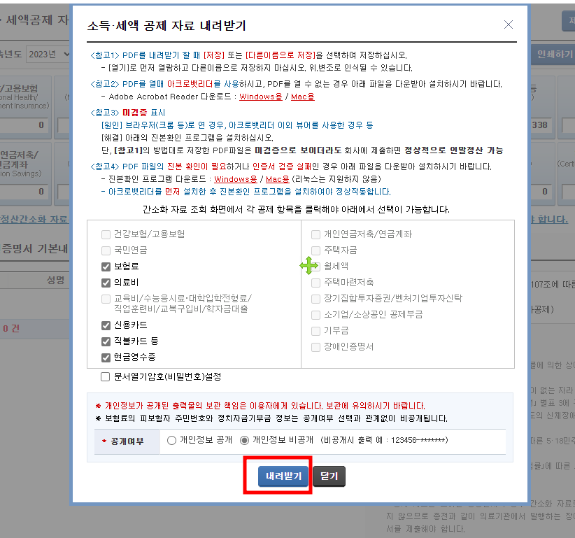 연말정산간소화 서비스를 받을 수 있습니다.